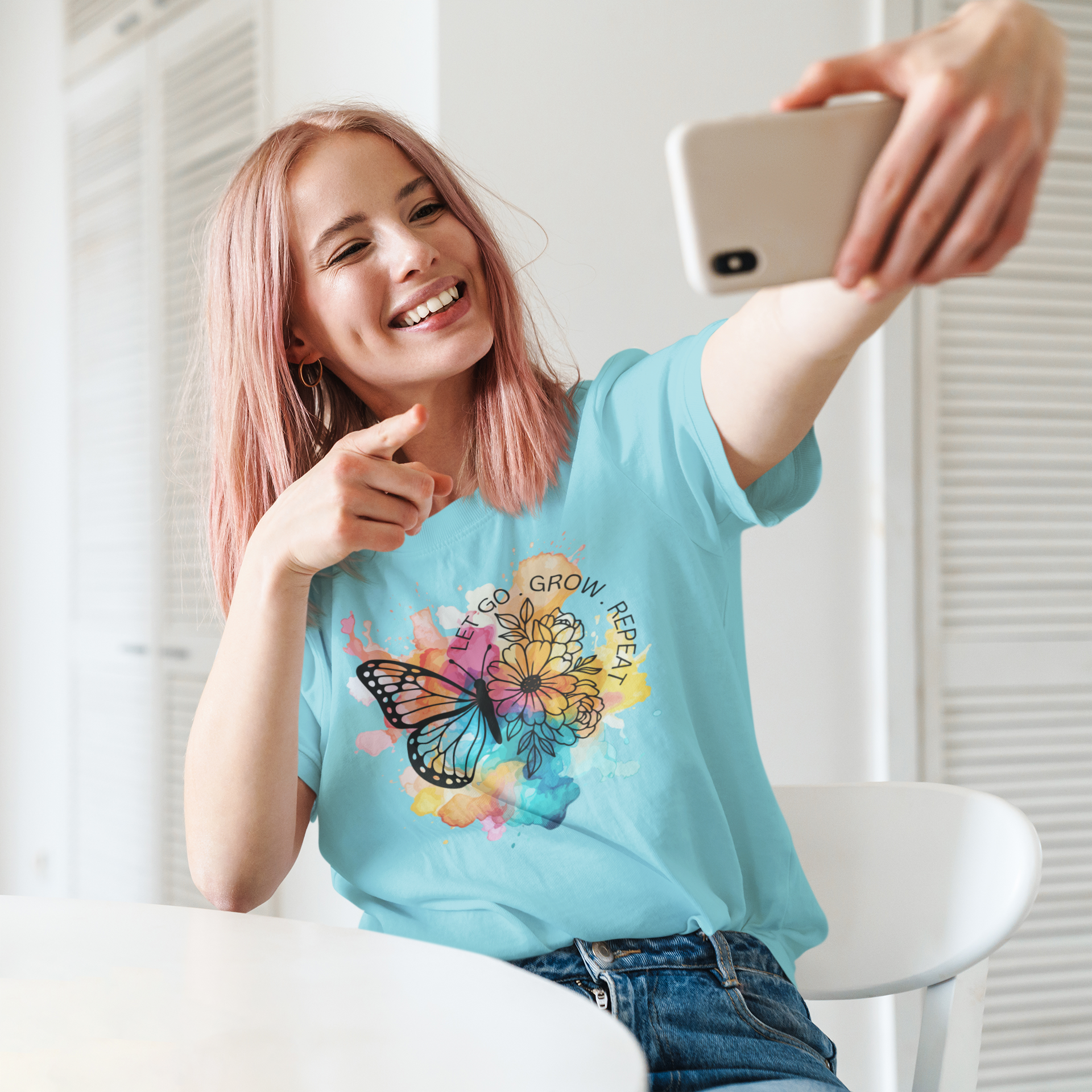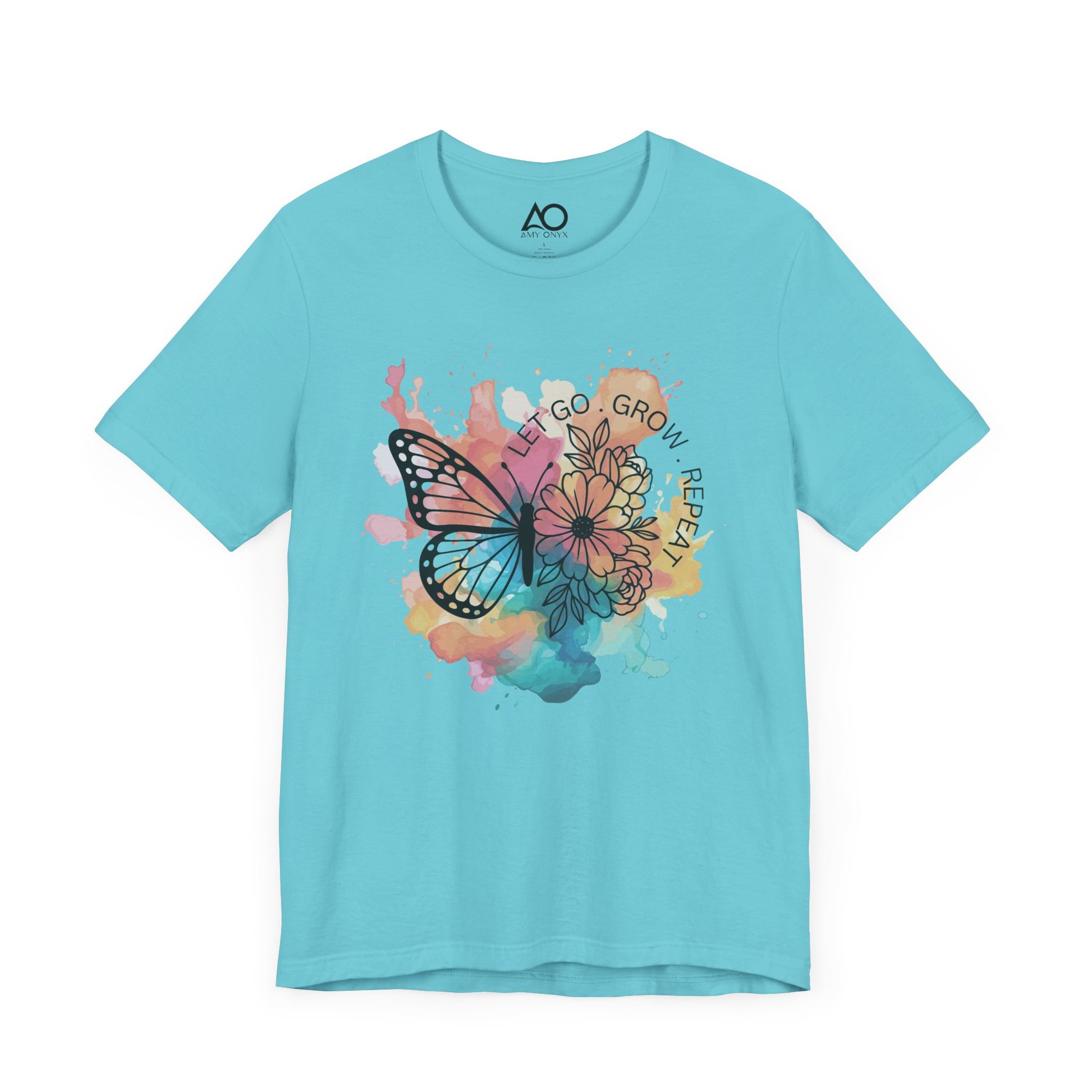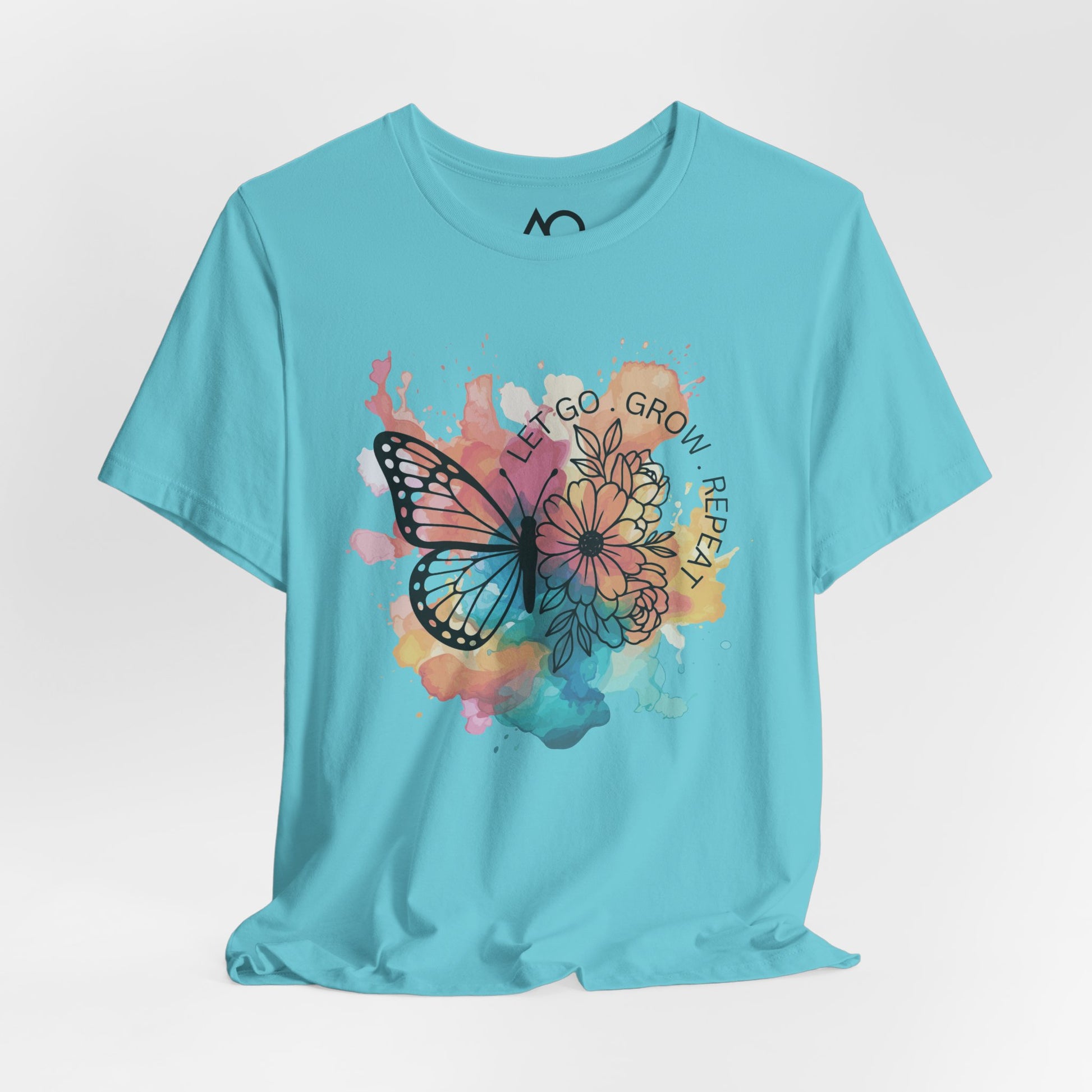 Featuring a vibrant watercolor design with flowers and a bold butterfly, this shirt captures the beautiful cycle of becoming: let go, grow, repeat. Whether you’re healing, evolving, or simply embracing the next version of yourself, this shirt says it all—without saying too much.